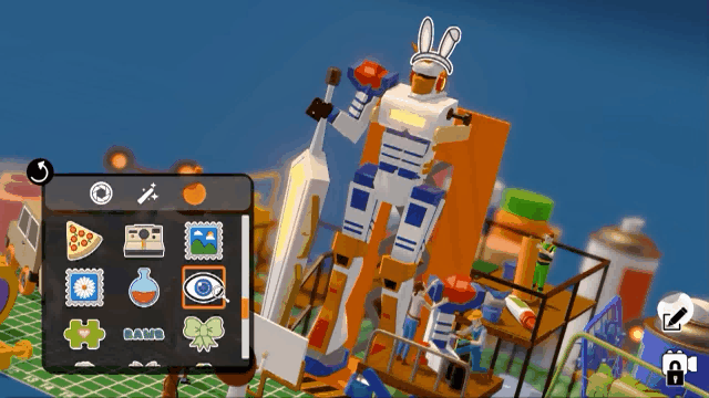 照片模式!也挺有意思,搜集每一个关卡里的里的拼图碎片可以获得贴纸,在照片模式里可以用贴纸编辑装饰画面,分享到社交平台,也是一种乐趣。可以想象很适合发ins或是小红书,当然笔者会更愿意尝试能不能做点搞怪表情包。
